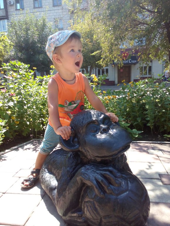 За последний месяц продолжаются успехи в речи. Слов много. Что-то похоже, что-то нет, но я просто знаю, что он имеет в виду. И это так здорово - понимать своего ребенка не только на интуитивном уровне, но и потому что он говорит. Из того, что первое приходит на ум: подуша - подушка, писос - пылесос, еклама - реклама, бизяна - обезьяна, ахвал - самосвал, афан - фонтан, мазин - магазин, гурец - огурец, пикос - абрикос, картоха - картошка, булка - булка, пацик - мотоцикл, пайсет - велосипед, крака - трактор, пайсютка - маршрутка, кось - скорая помощь, авто - автобус, дея - дерево, качели - качели, горка - горка, гулять - гулять. Но трамвай по-прежнему у него «кага», а самолет - «ёё». Знает многое из того, что видит дома, по телевизору и на улице, но не в книжках, т.к. через 3-4 минуты ему надоедает любая книжка. То ли дело машинки или, тем более, настоящая машина!!!