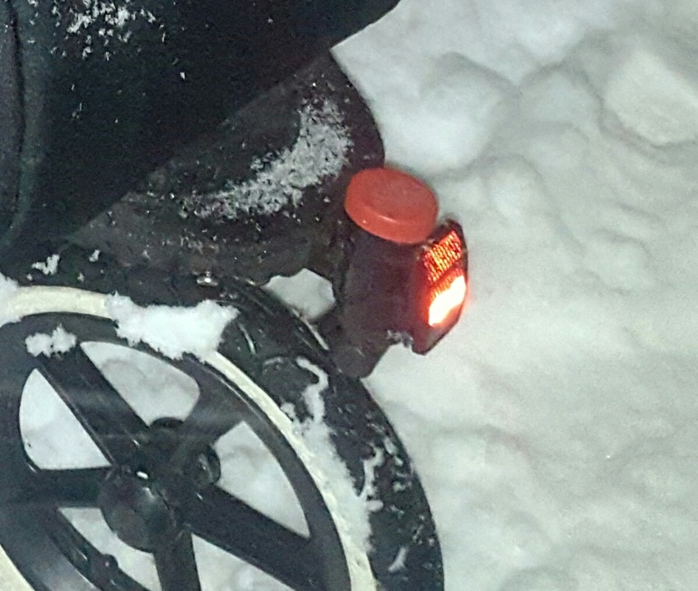 А на раму переднего колеса светоотражатель велосипедный подошел (правда потеряли недавно )))).