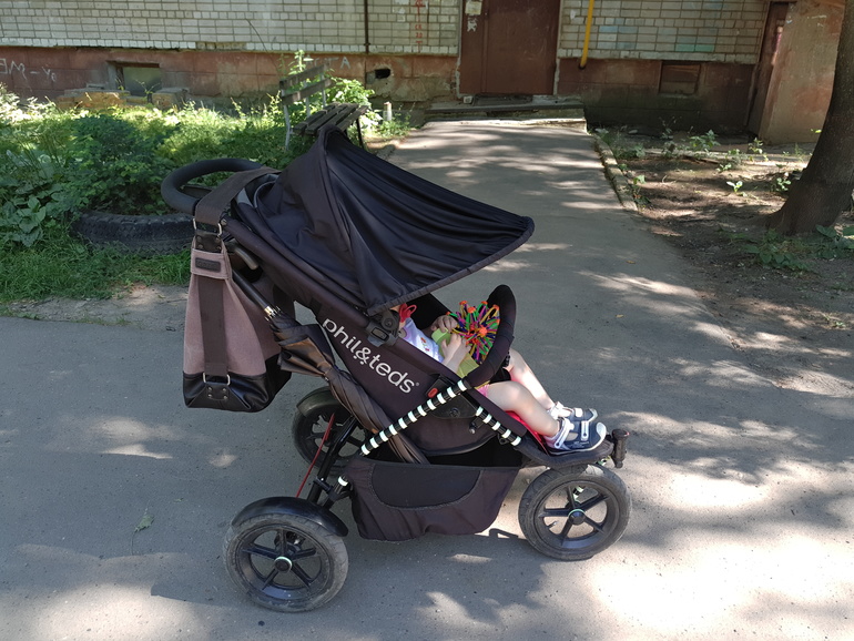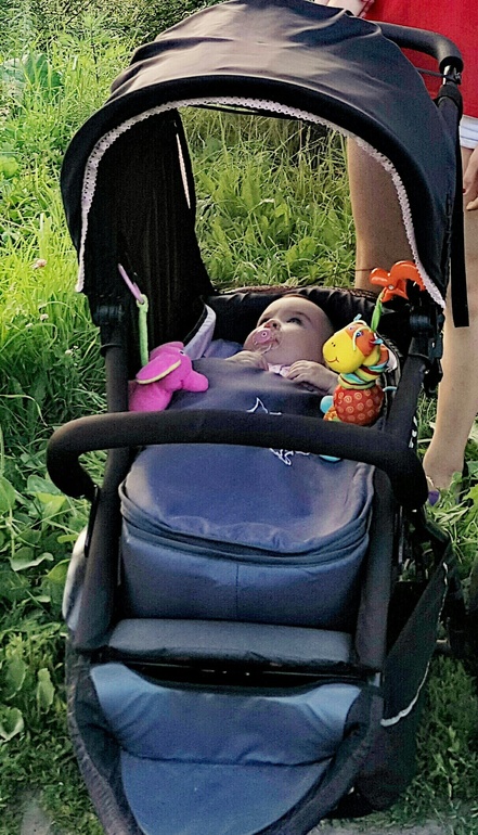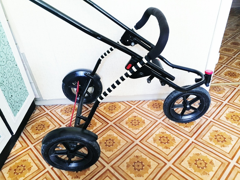 Таким образом коляска нам служит верой и правдой третий год после других карапузов. Не скрипит и не разваливается. Единственное, что поменяли-это камеры с покрышками. К сожалению в нашем городе не нашли оригиналы с белыми полосочками, что так придает ей эстэтику, но ждать через инет не могли, т.к. грыжи повылазили, а коляской пользуюсь каждый день. Еще покрасила акриловой краской подножку для ног. Она полностью из ткани,