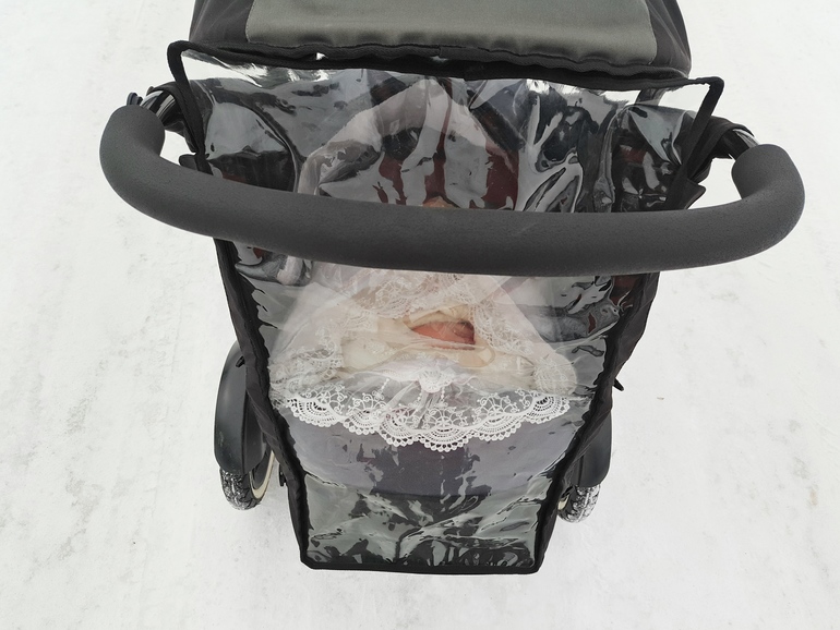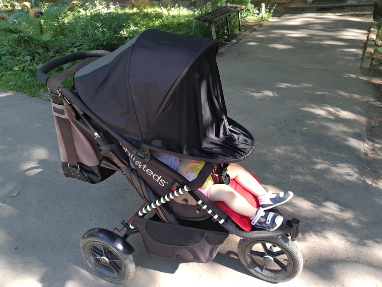 И приобрела универсальный козырек от солнца на основное сиденье.