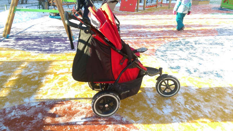 Я смотрела фотки, кажется, что очень низко. Боюсь, как бы грязь с дороги на ребенка не летела. Лежа в этом плане мне больше нравится, потому что выше.