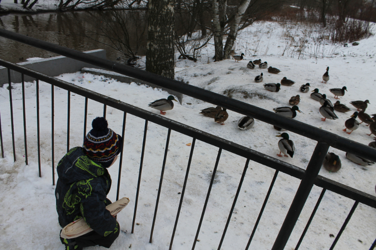 Потом ходили в ТЦ, по дороге кормили уток. Тоже стало одним из главных впечатлений поездки. В ТЦ Серёжа любит прыгать в игровой, а вот Митя не захотел там оставаться.