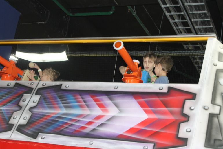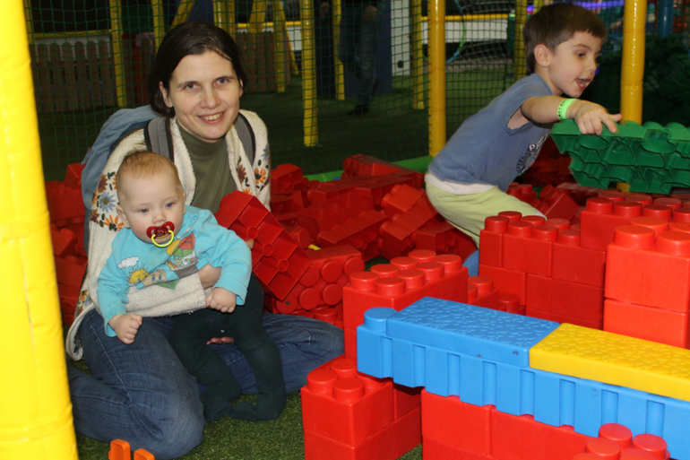 Следующий день отдыхали, потом нас сестра повезла в "Джоки-джоя". Я впечатлилась - чего только не придумают для детей! Серёжа с Митей до сих пор вспоминают, как стреляли из пушки мягкими мячиками. Мне понравилось кататься на ватрушке с Митей. Серёжа бесстрашно прыгал по всем батутам и даже прокатился на тарзанке. Миша с Даней там не первый раз, показывали всё самое интересное... и вызволяли Митю из всех мест, где он застревал, а также помогали нам его искать. Ибо Митя наделён особым даром теряться и лезть куда не следует. Вроде вместе со всеми, секунда - и его уже нет. В очередной раз отыскала его в лабиринте, на втором или третьем "этаже". "Стой, не уходи никуда, сейчас я к тебе приду!" - лезу наверх к плачущему ребёнку. "Ты почему вниз не спускаешься?" - "Я по горке не буду" - "А вот тут, где я пролезла?" - "Здесь мне не нравится".