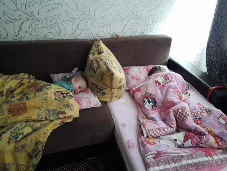 Вот так сейчас я их укладываю спать днем. Им нравится, что рядышком. А я сижу на диване слева, как воспитаткльница в садике