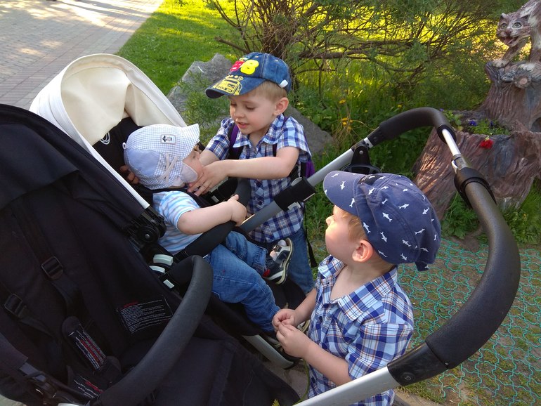 С тремя, конечно, мне оказалось сложнее, чем было с двумя. Как то не все я предусмотрела.. Бывают моменты, когда с тремя очень сложно что-то организовать. Не представляю, как бы я без помощи смогла каждый день водить старшего на процедуры, ЛФК, в бассейн..