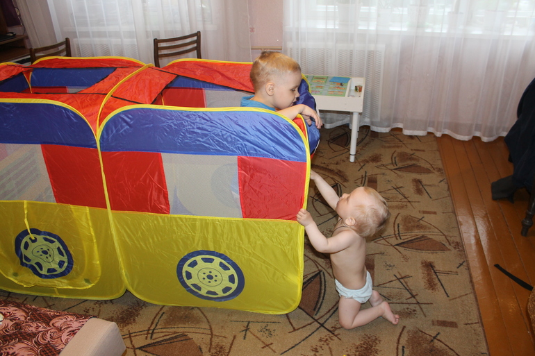 Младшему подарили палатку-автобус, чтобы и старшим было интересно вместе с ним играть. Ну и шарики к ней, как для сухого бассейна. Ожидания оправдались,в все вместе любят там тусоваться.