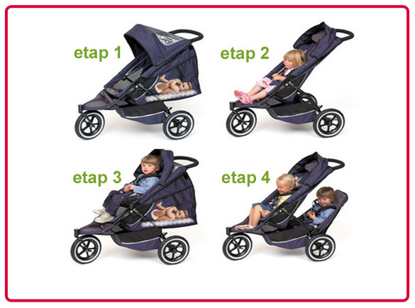 Вообще коляска рассчитана с рождения. Так как мы купили ее уже в 5 месяцев младшего, то "новорожденную" конфигурацию не использовали. Но я вам ее все равно покажу на примере другой модели этой же фирмы для тех, кто с Филами еще не знаком в принципе: