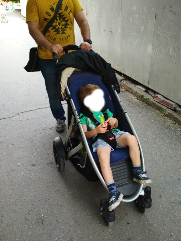 Возвращаясь к нашей коляске. У нее ручной тормоз. Как же это удобно, моя обувь всегда в полном порядке!