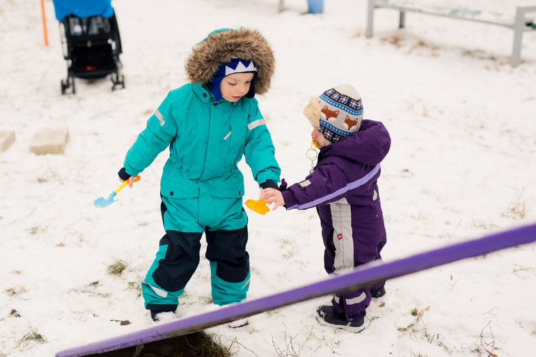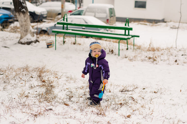 У нас позавчера выпал наикрасивейший снежок (явление редкое, снег лежит не долго, надо ловить момент). Как сложно мне гуляется со вторым сыном я уже писала неоднократно, хотя в рамках квартиры у нас все прекрасно - есть график, кушает сам, играется, бегает, хорошо спит (в обнимку со взрослым). Но тут праздничные дни, муж дома, выйти вчетвером во двор на саночках и коляске здорово, я была уверена, что не грязная, а снежная зима младшему карапузу понравится. Но нет, у нас снова провал. Во дворе мальчишки начали копать снег, очищать горки, песочницу. Старший с энтузиазмом, младший вроде тоже, но хватило его минут на 10, потом начал плакать. Предположил муж, что ребенок хочет спать, посадил его в коляску и укатил круги вокруг дома наворачивать, а мы со старшим продолжили "уборку двора" - так расслабленно, так спокойно. Покопали, оставили и для других деток "работу" и поехали на саночках кататься - искать братика с папой, которые уже в соседний квартал спустились. На саночках тоже так все спокойно, страший довольный едет, по сторонам смотрит, мне никакого напряга, несмотря на 9 месяц. Доехали - младший не спит, мальчики взялись раскапывать другую детскую площадку, но через минуты 2 младший снова сдался - в плач. Усадили уже его на санки, папа пошел катать - 1 круг успешно, потом опять в плач. Папа купил в соседней будке соленые палочки, которые младший любит - 5 минут тишины, пока мы со старшим копали. И снова плач. И лопатку сломали. Решили поехать на базар за лопаткой и домой, старший на саночках - снова все отлично, младший в коляске - снова плач. Пока поднялись до нашего двора, поняли, что до базара не дойдем под этот рев, свернули во двор, старший расстроен, но что делать. Дома плач прекратился, дети поели и легли спать, папа ушел за лопатками. В общем, снежный двор мы провалили.