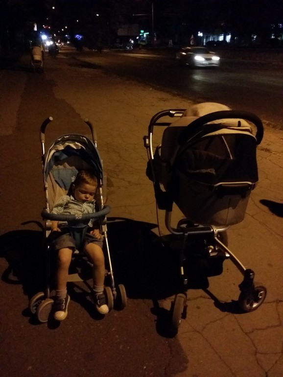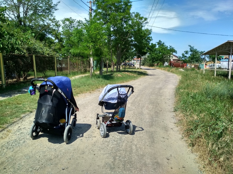До нашей площадки идти 800 м вдоль проезжей части, и столько же обратно. Я героически держалась 4 месяца, пока не поняла, что так больше нельзя - обязательно нужна двойная коляска.