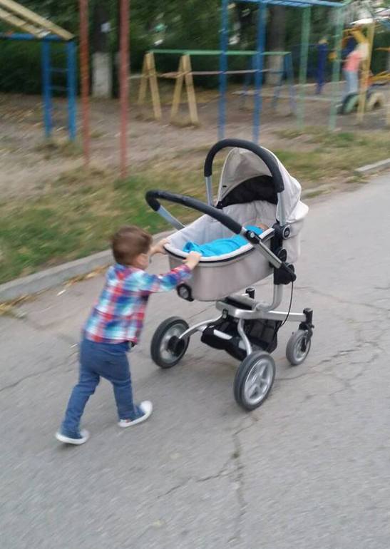Илья у нас рос спокойным, в меру послушным малышом. С 1.6 года гулял пешочком, коляску использовали редко - на дальние вылазки на весь день. Когда родился Мишка, вопроса покупки погодковой коляски даже не стояло, нет необходимости.