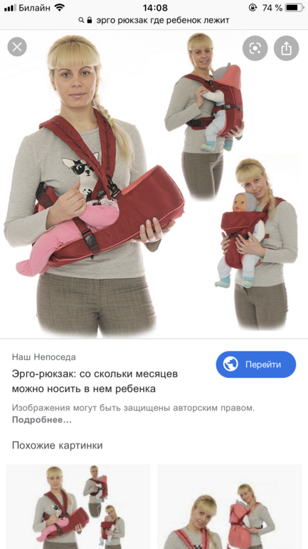 Точно такой рюкзак, как на картинке, я не советую - он неэргономичный. Если соберётесь покупать, советую немного прочитать про эргономичную позицию ног. То есть когда ребёнок находится в рюкзаке, ножки у него должны быть буквой "м", коленки выше попы. Можете посмотреть сайт слинголиги.