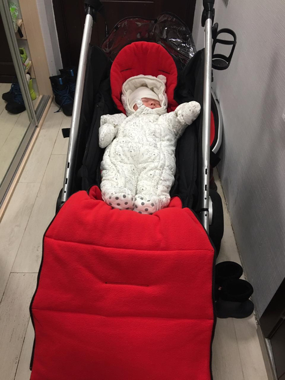 Флисовыц конверт-футмуфф извлеките снизу, он там не нужен. Если вам кажется, что холодно, то сверху укройте ребенка пледом и закройте переноску на молнии.