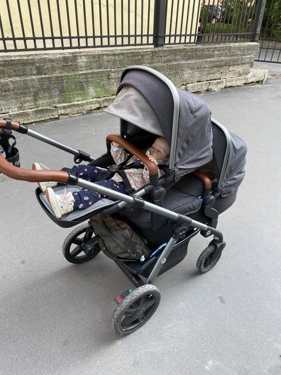 Рассматривала для себя и другие варианты - mountain buggy duet, например, потому что она узкая. Но там места слишком маленькие. Для двойни ещё ничего, где оба малыша совсем маленькие, а для погодок уже не очень. Ну и вживую она мне не понравилась, текстиль какой-то мне показался не очень (смотрела новую в магазине).
