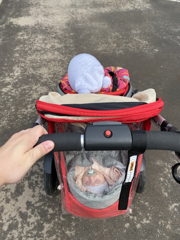 У фила в этом смысле отлично - если захочет, сядет в коляску, а нет - пешком пойдёт, а у меня коляска обычной ширины и конструкции, как хорошая вездеходная прогулка. Кстати, ручной тормоз, который очень быстро «включается» тоже очень удобен, когда вдруг срочно надо ловить старшую