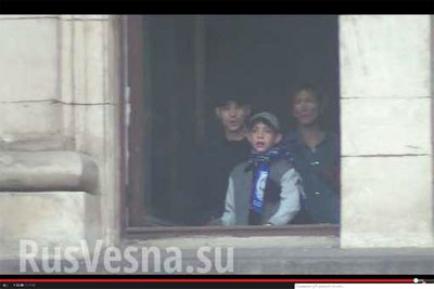 Из сообщений СМИ лета 2014 года: "Снимок - из Одессы. В выбитом окне Дома профсоюзов стоит мальчик, лет 10-12. Ребенок обреченно спокоен, просто смотрит вниз, не понимая, зачем взрослые начинают поджигать дом. Очевидцы рассказывали - спасаясь от погромщиков, внутрь забежала пожилая женщина с двумя малышами. Один из них изображен на фото. Среди живых его не найдут, тела тоже…"