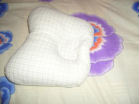 В-третьих, купить ортопедическую подушку. Она такая маленькая, поддерживает голову прямо. И пока пользоваться ей.