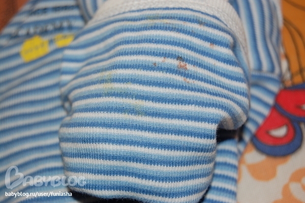 правда было с торчащей корочкой, висящей на соплюшке...и тут моё "шило в попе"...давай переворачиваться, перевернулся и корочка осталась на пеленке...не успела с корочкой сфоткать...а от то что сейчас под катом, а еще на футболочке что осталось на внутренней стороне рукава...перепугалась, купать не пошла...одела чистый слипик и переживаю(а он сидит гогочет и пузыри пускает)...до вторника еще три дня...блин что делать? у кого как было? вызывать скорую, завтра дежурного врача или спокойно ждать вторника?!