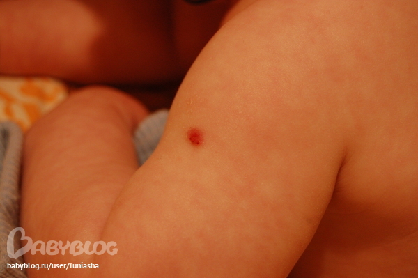 а тут вчера внутри появился гнойничок...ну думаю, во вторник нам в поликлинику, покажу и спрошу... (конечно когда ее делали предупреждали, что будет гноится, не трогать, не ковырять, не протирать, не залеплять) ...а тут пошла сейчас его раздевать перед ванной, а тут вон что...
