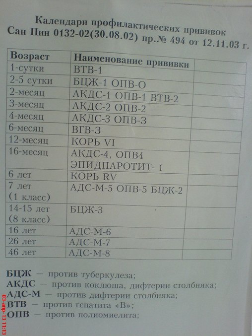 национальные календари прививок.