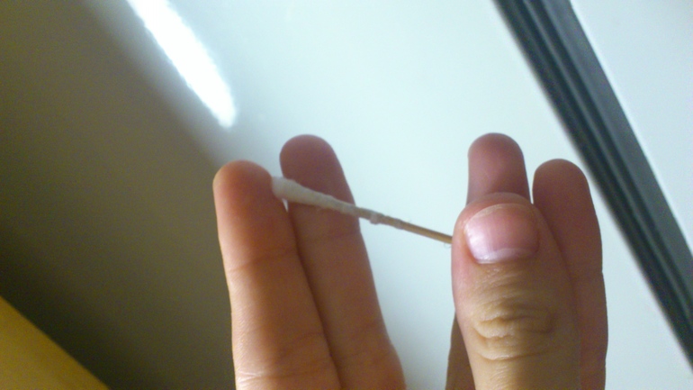 не,на деревянную.Это конечно не оч.безопасно.Но я наловчилась наматывать так чтобы слой ваты полностью покрывал палочку,но и не толсто было.