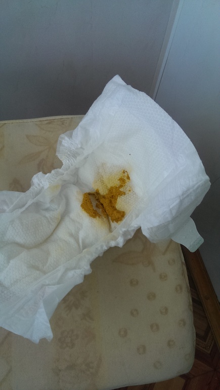 Стул новорожденногоДевчонки, подскажите нормальный ли у нас стул для новорожденного (нам 5-й день), кормлю грудью. Малыш перед тем как покакать плачет, видимо животик болит. Такие какахи только вчера вечером стали по цвету (тыква будто), консистенция все такая же все 3 дня, что я дома. Фото ниже, цвет каках более оранжевый