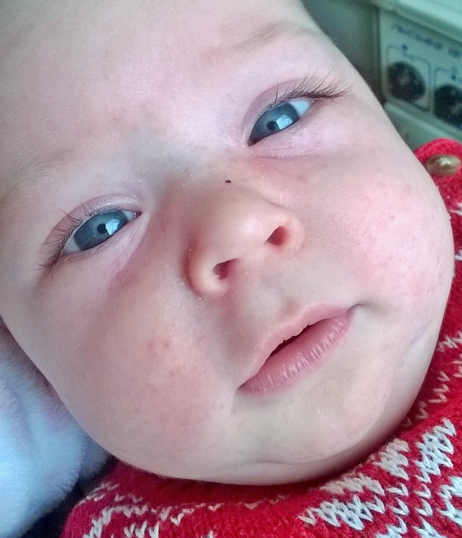 нам 4 месяца, такие прыщи в меньшем количестве появились отчётливо ~в 2,5 месяца, когда "руки нашли рот". И с тех пор +/-, но последние пару недель стало ощутимо больше на веках.. Меня начинает сильно беспокоить...:( в других местах чисто).