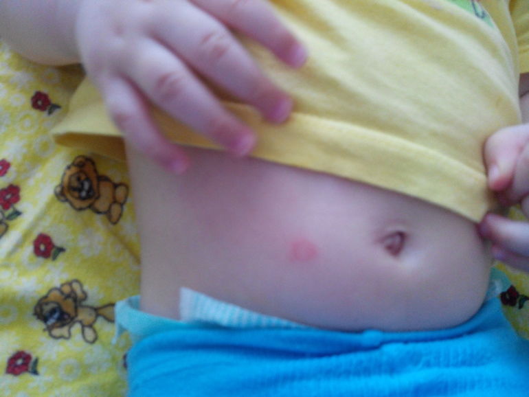 Укусы, вроде, выпуклые. А это пятно ничем, кроме, цвета не отличается от остальной поверхности кожи. Вот не знаю, конечно, если не пройдёт до завтра, врачу покажем