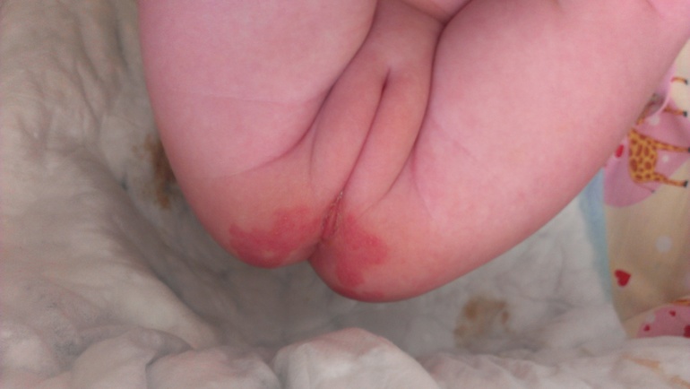 Разноедевочки!помогите!нам 2 месяца, на попе раздражение не проходит около месяца! Мажу бепантеном,не проходит! Врач больше ничего не говорит! Может у кого такое было?