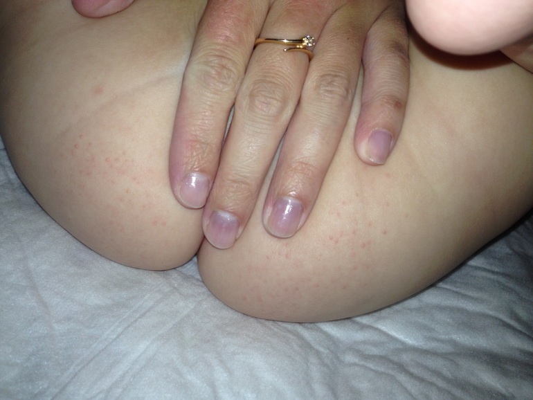У нас было от сырости подобное, дочка попой в шортак села на влажное полотенце, я не сразу увидела влажные шорты, и если на влажный горшок посадила нечаянно сразу похожая реакция, на фото не чётко видно, у нас были небольшие прыщики, как сыпь, некоторые воспаленные. Лечила на ночь крем Драполен толстым слоем под памперс и в дневной сон на попу без памперсы и присыпкой в течении дня. За пару дней прошло.