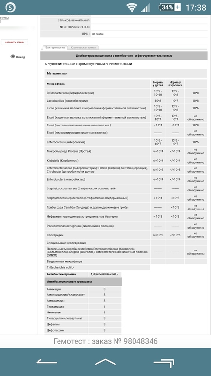 И анализ на дисбак пришел, завтра к врачу идем... посмотрим что выпишет...