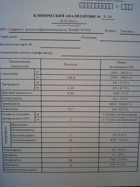 О чем говорят пониженные сегментоядерные ( потому что норма для детей от 1 месяца до года 17-30)?