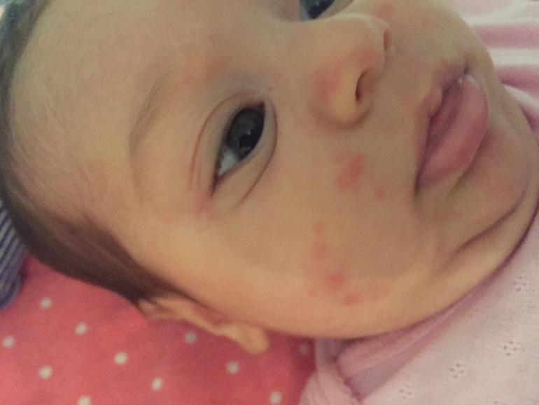 АллергияДевочки уже почти 2недельки у Дочи начали высыпать щечки. Сначала было очень мало потом все больше и щяс вот так( Соблюдаю диету. Педиатр сказала на молоко. Исключила кисломолочку. Принимаем Аквадетрим и Урсофальк. Может на эти препараты аллергия?