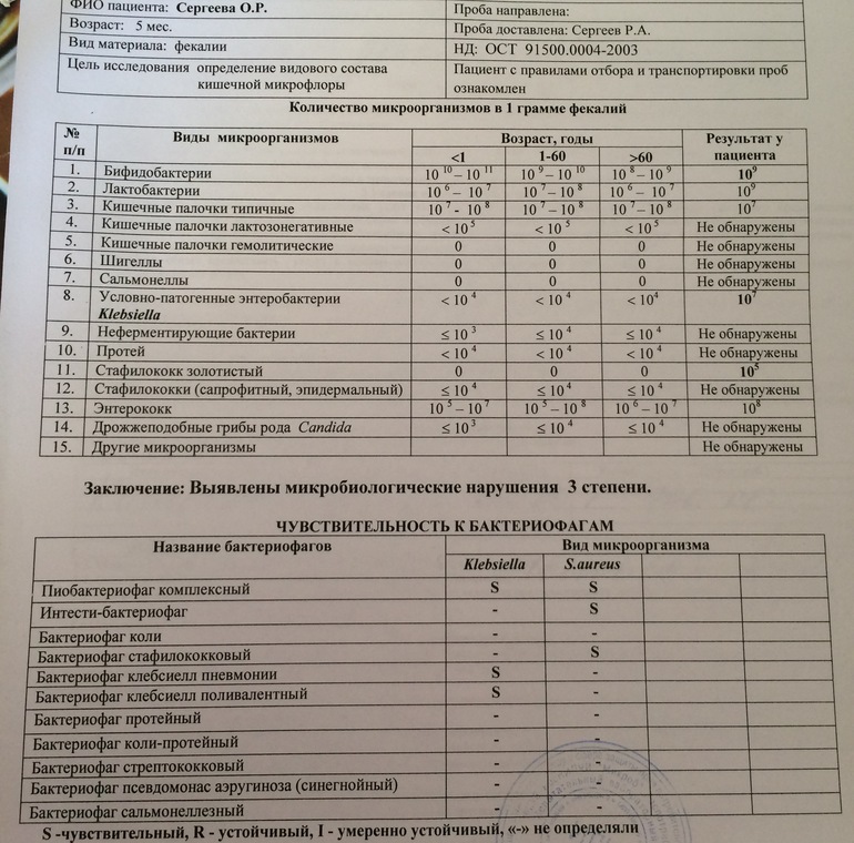 В анализе стафилококк золотистый 10^5, гастроэнтеролог сейчас сказал "ничего страшного", лечение не назначил. Это норм? Или вы с таким значением что-то пили? У нас еще клебсиела 10^7 ... Я понимаю, что дисбактериоз до года может быть нормой, но вроде как золотистый стафилококк не очень хорошая штука... И залечивать не хочу, и запустить боюсь.