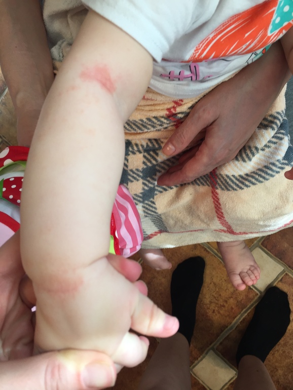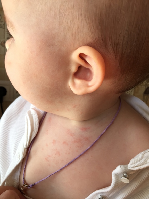 Никитка невллергенный, и я решила и Маше также все начать давать по чуток!не прокатило как с ним чуток чай с медом, облизнула дольку мандаришки, сыр обожает, каши молочные... Ну это то не в один миг... И тут... На той недели сталт красней изгибы ручек... Потом блямба на животике, на ножке... Да добавилось наверное никиткиным рыбным супчиком( дала ложечки 2 попроб просто бульон легкий... И оказалось усе, ахтунг..!фото: