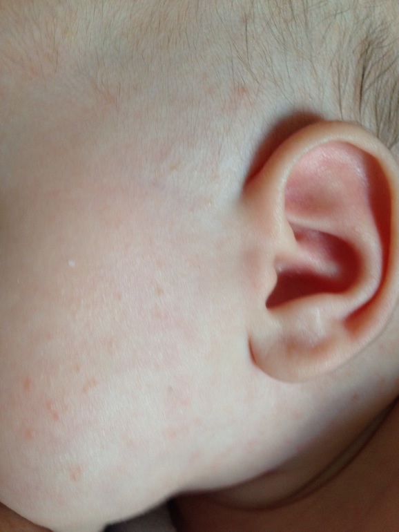 Сейчас стоит невыносимая жара, малыш потеет. Возможно, это и потница, только я не знаю как она выглядеть может. Читала, что она в складочках больше, а у нас в складочках чисто.