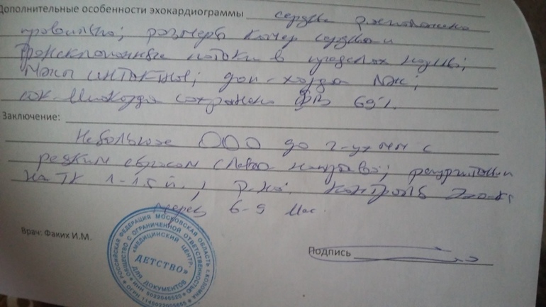 небольшое ооо до 2 мм с редким сбросом слева направо ; регурта ... бла бла на TY 1-1.5. рекомендовано контроль в 6-9 мес.