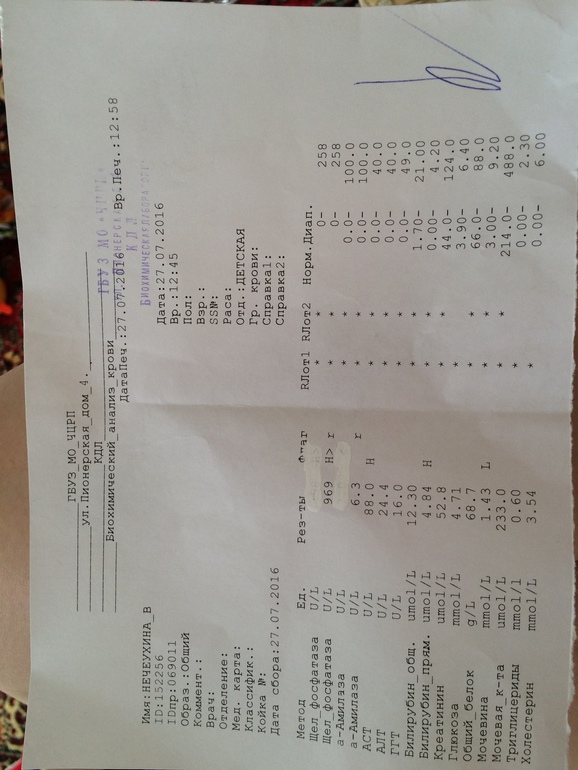 Посмотрела. Надо дообследоваться. Щел.фосфотаза у детей может быть увеличена из-за активного роста. Но у вас аст в 2 раза повышено и язык желтый, плюс отказывается от всего кроме груди. Вам еще анализ кала дождаться надо, маркеры гепатита.. но уже хорошо что не увидели патологии органов на узи. Завтра с'ездите к гастроэнтерологу, думаю он вас все-таки успокоит. Проблема есть, какая - надо довыяснять. Но не думаю, что так все страшновато, как могут написать в инете.