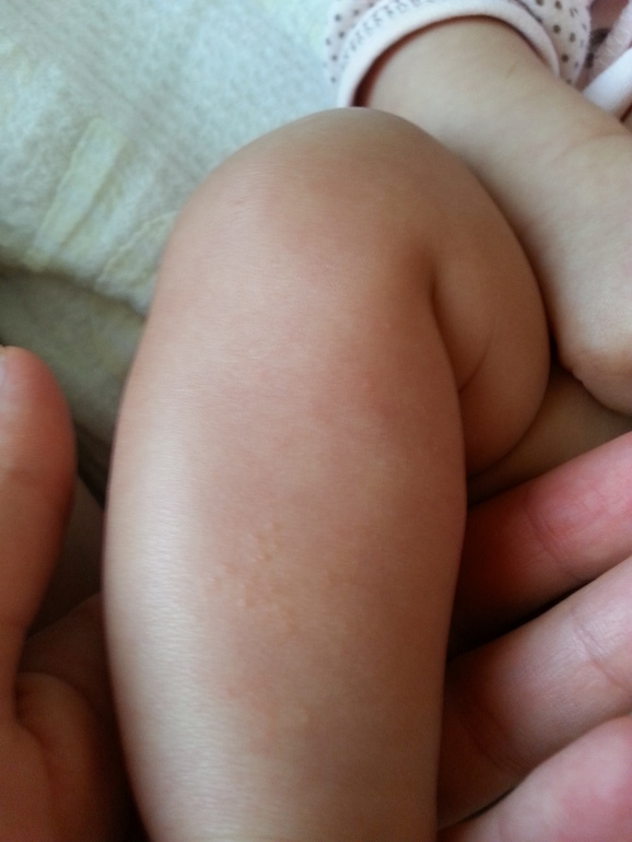 недели 1.5 -2 назад у малышки стали появляться на щеках, висках бесцветные прыщики. Их даже и прыщами не назовешь, сыпь какая-то. Я это связывала с тем, что когда ношу в слинге, кожа потеет. Либо когда кормлю сидя. Опять-таки кожа к коже возникает такой эффект. Поэтому я не парилась, думаю станет прохладнее и проблема отпадет. А сегодня как взглянула, сыпь местами на ножке появилась😲