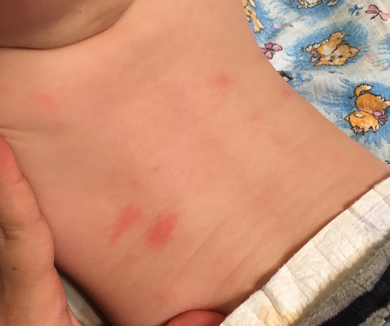 Тоже такое было, хотя давненько не повторялось. У нас не от воды. То лежала на пеленке (порошок и пр.проверено - не в них дело), вдруг появились, а через 2 часа уже нет. То с прогулки пришли, под футболочкой обнаружили. То вообще в волосистой части головы появлялись. Никак не беспокоили и так же пропадали. Комаров и прочих насекомых нет.