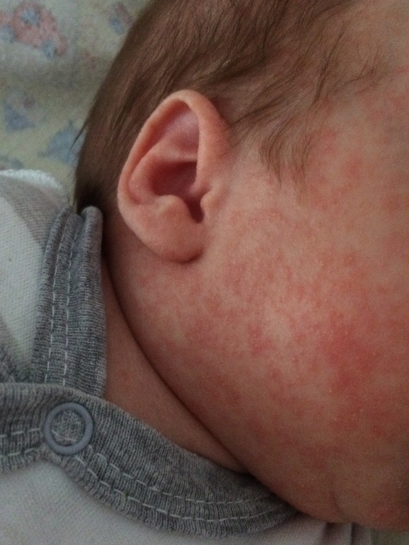 Я думаю акне. У нас началось в 1 месяц. Потом обсыпало с головы до пят. Через месяц прошло.