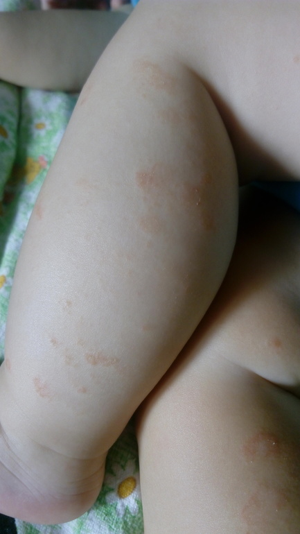 АллергияПосмотрите, пожалуйста, это ведь аллергия у нас на ножках? Грешу на банан. Давала 2 дня из банки-было все ок. Потом дала обычный пососать. И к вечеру ножки стали как сухие очень, к утру места сухости покраснели. Чем мазать? Нужно к врачу? Как быстро пройдет? Спасибо заранее за ответы!