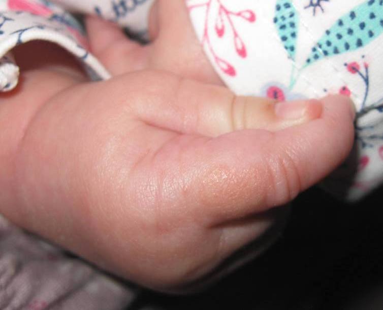 Вообще на экзему похоже, только не знаю бывает ли она у младенцев. У меня точно такие же корочки на пальцах.