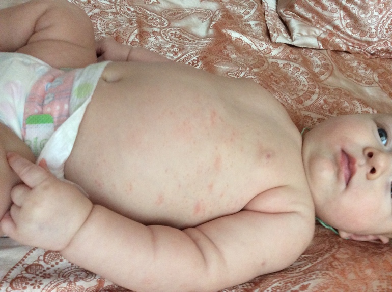 Аллергиясыпь примерно уже дня 4. Малышу 3 месяца. На ГВ. Нового ничего не ела, порошков не меняла... он не чешется, вполне весёлый ребёнок. И локализуется по бокам животика. И сыпь ( на ощупь кожа пупырчатая) и пятнышки то проходят, то появляются