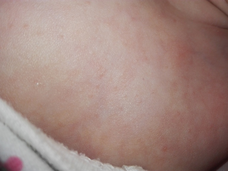 Фото добавила, хотя видно не очень. На груди много и на подбородке внизу много,но не красных,а цвета кожи мелкие пупырышки. А красных немного но есть. На фото на лице и грудь сфотала
