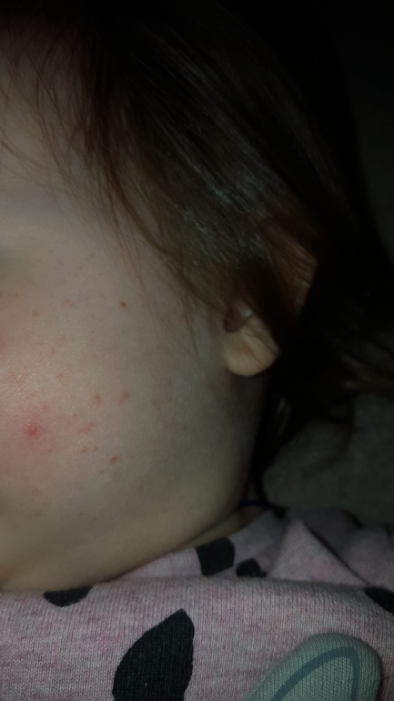 Лицо нереально сфотографировать, ручки уже получше. Сыпь становится темнее, похожа на веснушки.