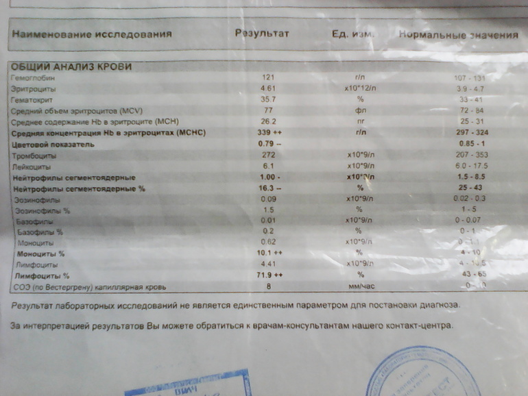 Вирусные инфекцииПоехала я по скорой 25 вечером в больницу. Темпа весь день была норм. Я уже обрадовалась, 4день,вирус думаю, точно, пошли на выздоровление. Но кашель усилился, появились сопли жуткие, и вдруг темпа под вечер 38.3,дитя как тряпочка, весь сине-красный. Я,конечно,в скорую. Итог:лежим в Сперанского опять. Диагноз: орви, "махровый" бронхит, пневмония под ?, видите ли снимок плохого качества. Завтра повтор. Колимся,дышим, плачем.... Вот те и ОРВИ... А такой результат анализа крови был утром.