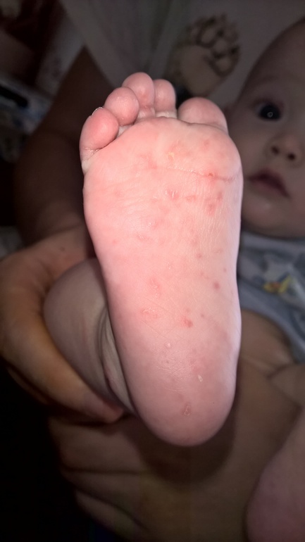 напомню, на ножке на стопе, на лодыжке и по бокам сильная сыпь( фото не могу, т.к. с телефона), первый раз были в четверг, 5 дней назад. Сдали соскоб на чесотку- отрицательный. Назначили- адвантан, полисорб или энтеросгель, бифидум бактерин, капельки зиртек. За выходные стало хуже, появились волдыри с корочкой. Сегодня опять пошли, опять соскоб на чесотку! Опять отрицательный. Из лечения поменяла только зиртек на эриус сироп. Девочки, может кто знает, а вдруг и впрямь чесотка? От аллергии лечение не помогает.