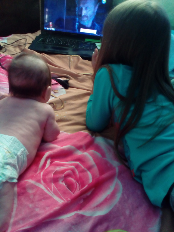 С сестренкой смотрит фильм))