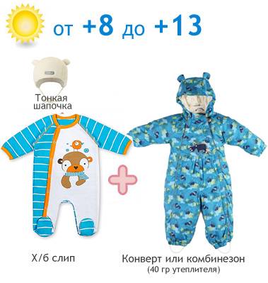 Чего-то много одежек. Мы очень легко: тонкий слип, тонкая шапочка и флисовый слип (чуть теплее обычного). Всё, даже кисти рук голые. Могу накрыть пледиком. Смотрю на других: в комбезах да шапках, все укутанные. Короче, моржа растим))
